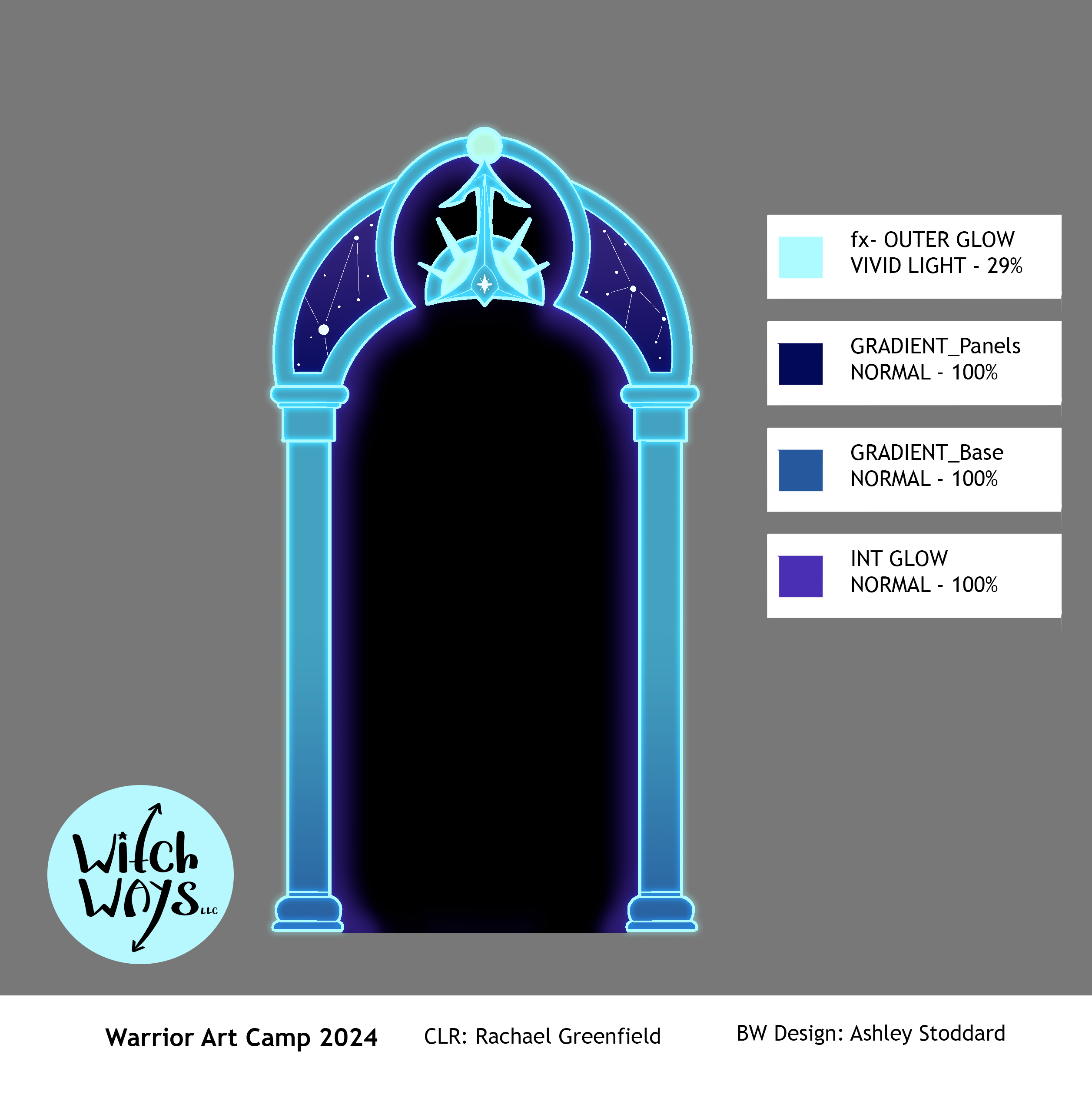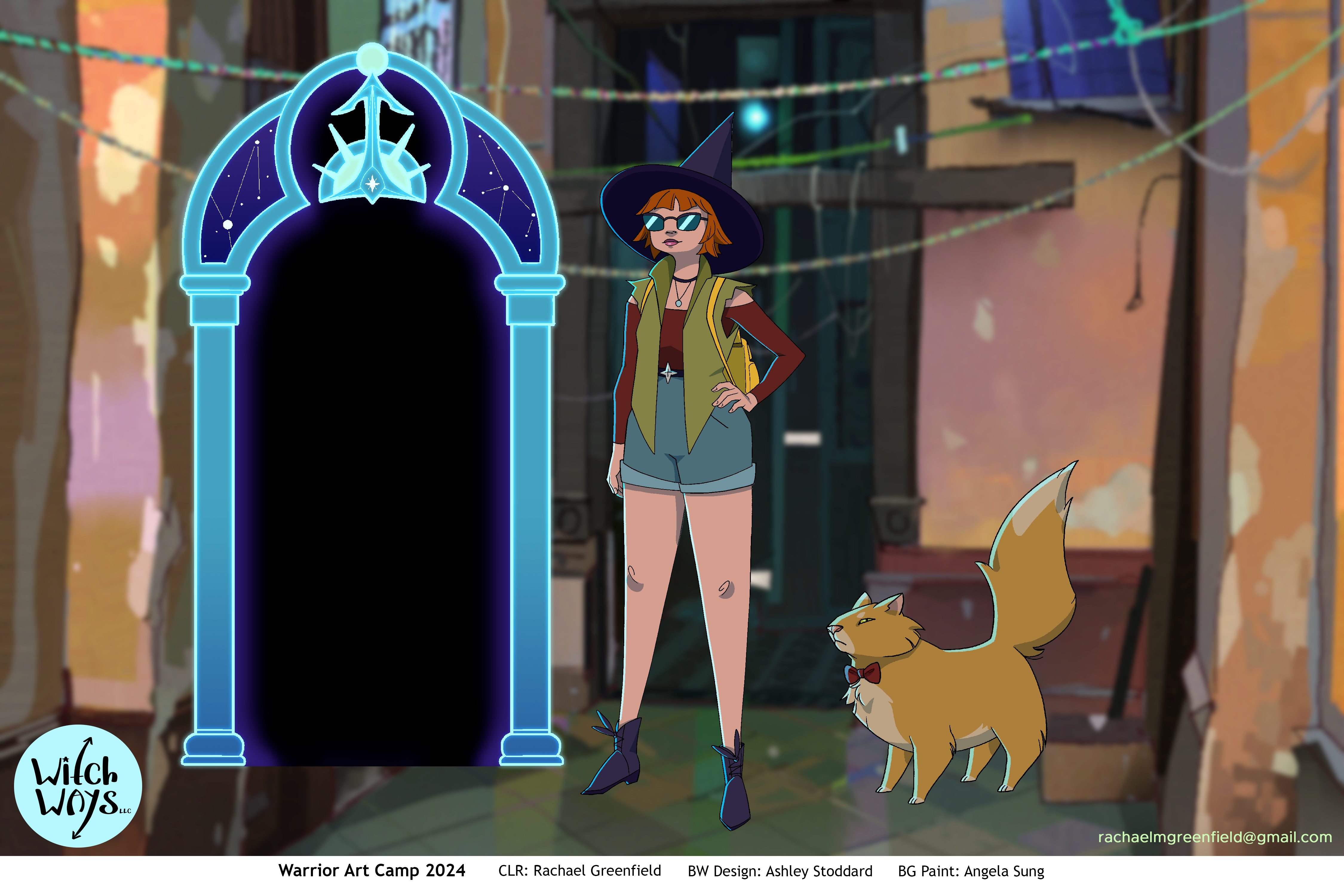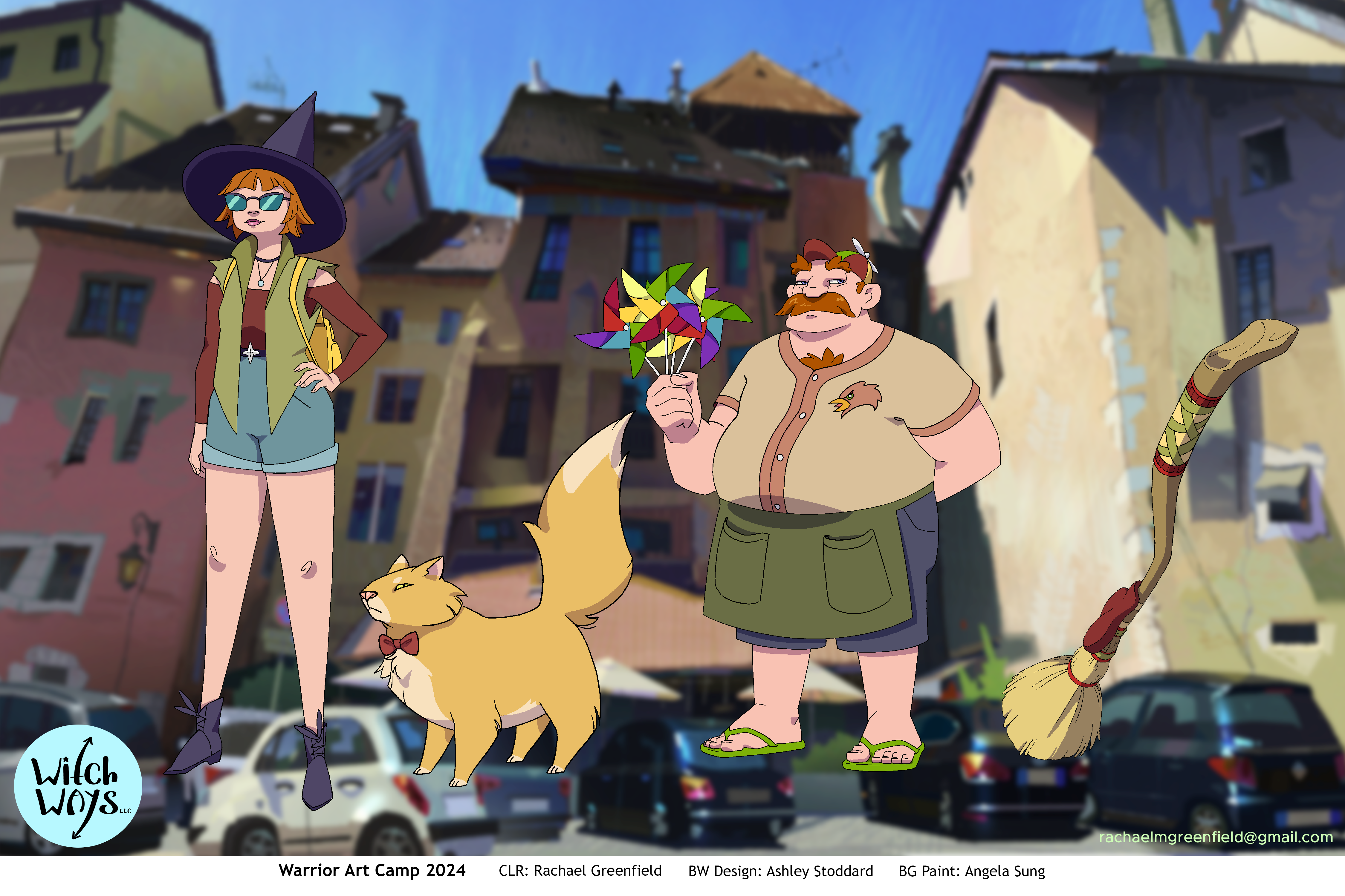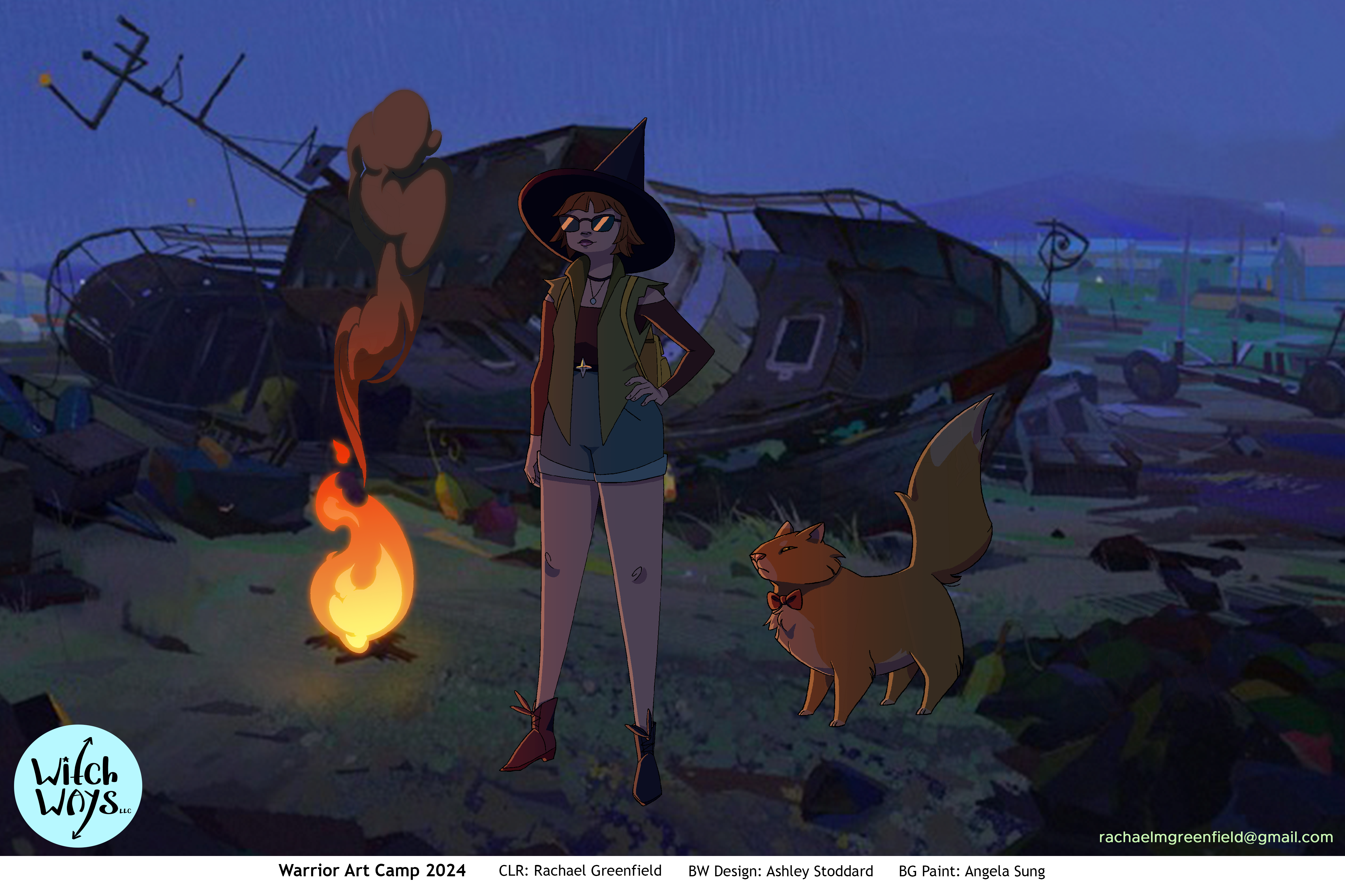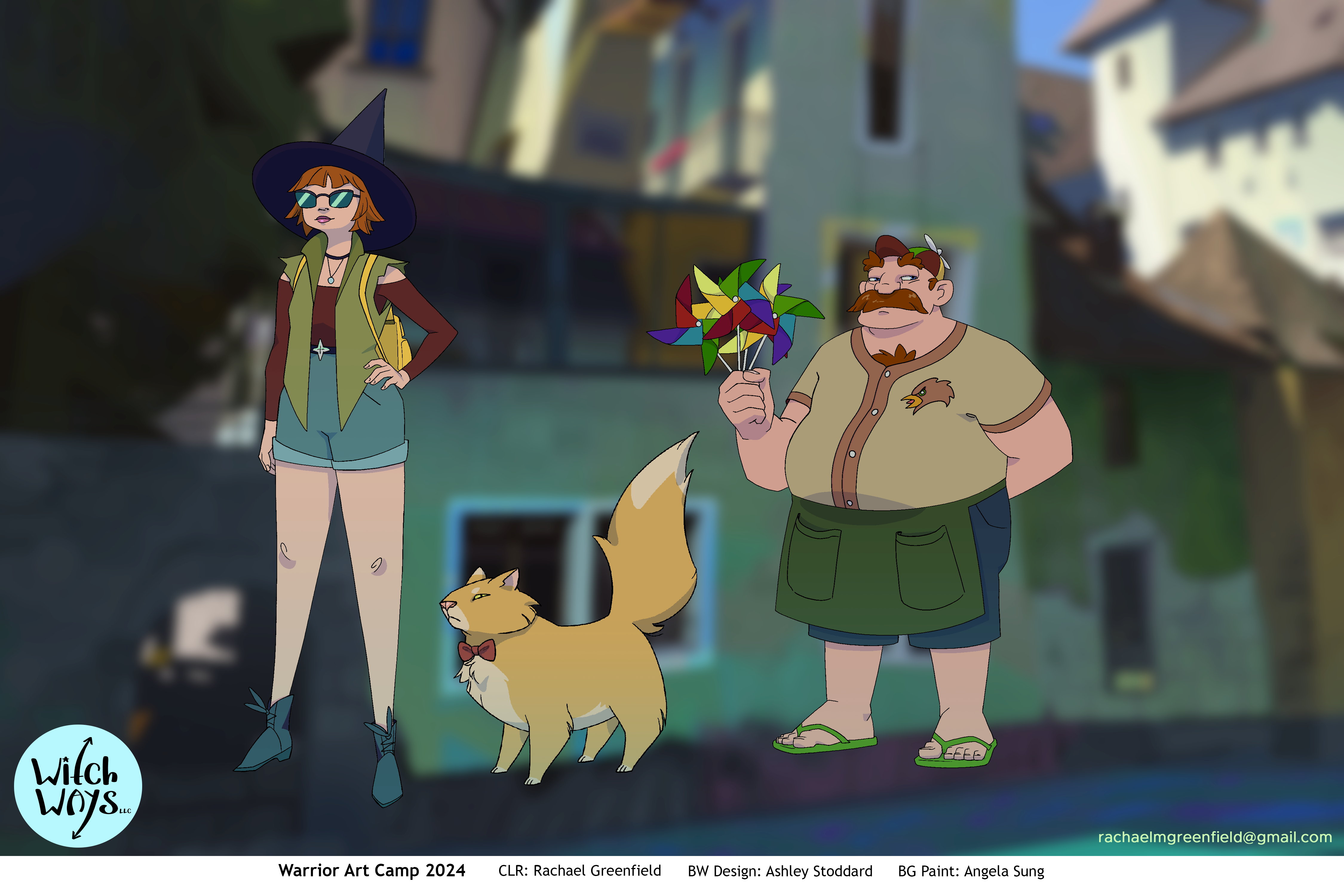 Line art for Character and Prop designs provided by Ashley Stoddard, and Background paintings provided by Angela Sung.